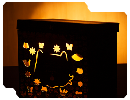 Com uma iluminação indireta entre duas camadas e elementos vazados, cada detalhe ilumina ao levantar a tampa. Esta embalagem memorável inspirou toda uma jornada de encantamento. Foi ela que deu luz ao Natal de Luz Kopenhagen em 2020, tornando-o uma celebração brilhante e inesquecível.